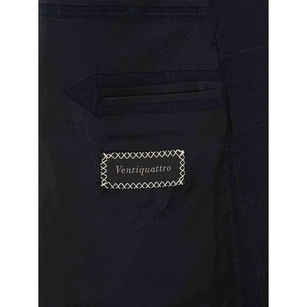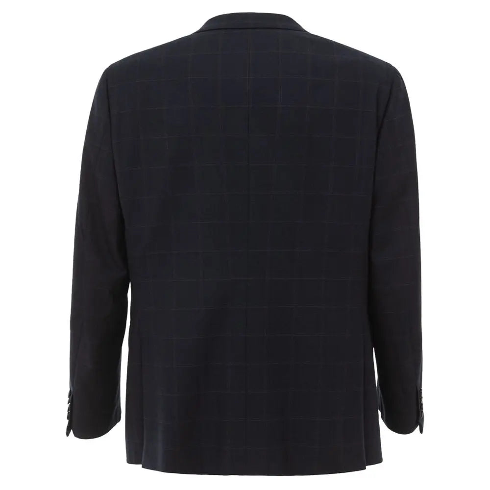 Chaqueta Brioni ‘Ravello’ de cuadros, de un solo botón. Tejido de lana azul con cuadros, cierre frontal con dos botones, dos bolsillos frontales con solapas y bolsillo lateral, clásico cuello de pico, dos aberturas en la parte trasera. Forro interior, línea clásica con ajuste regular. SKU interno: 24JUN101. Composición: 100% lana - SKU interno: 24GIU101