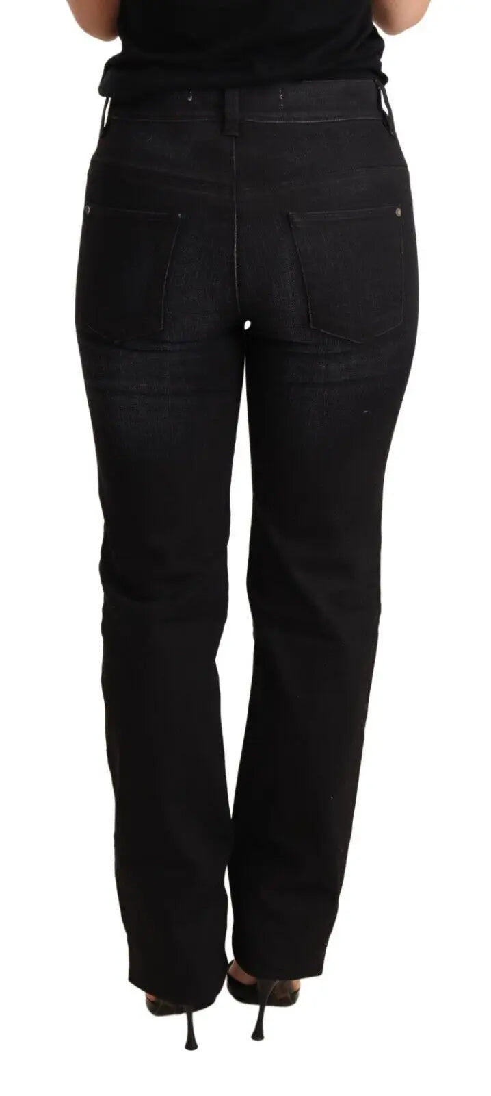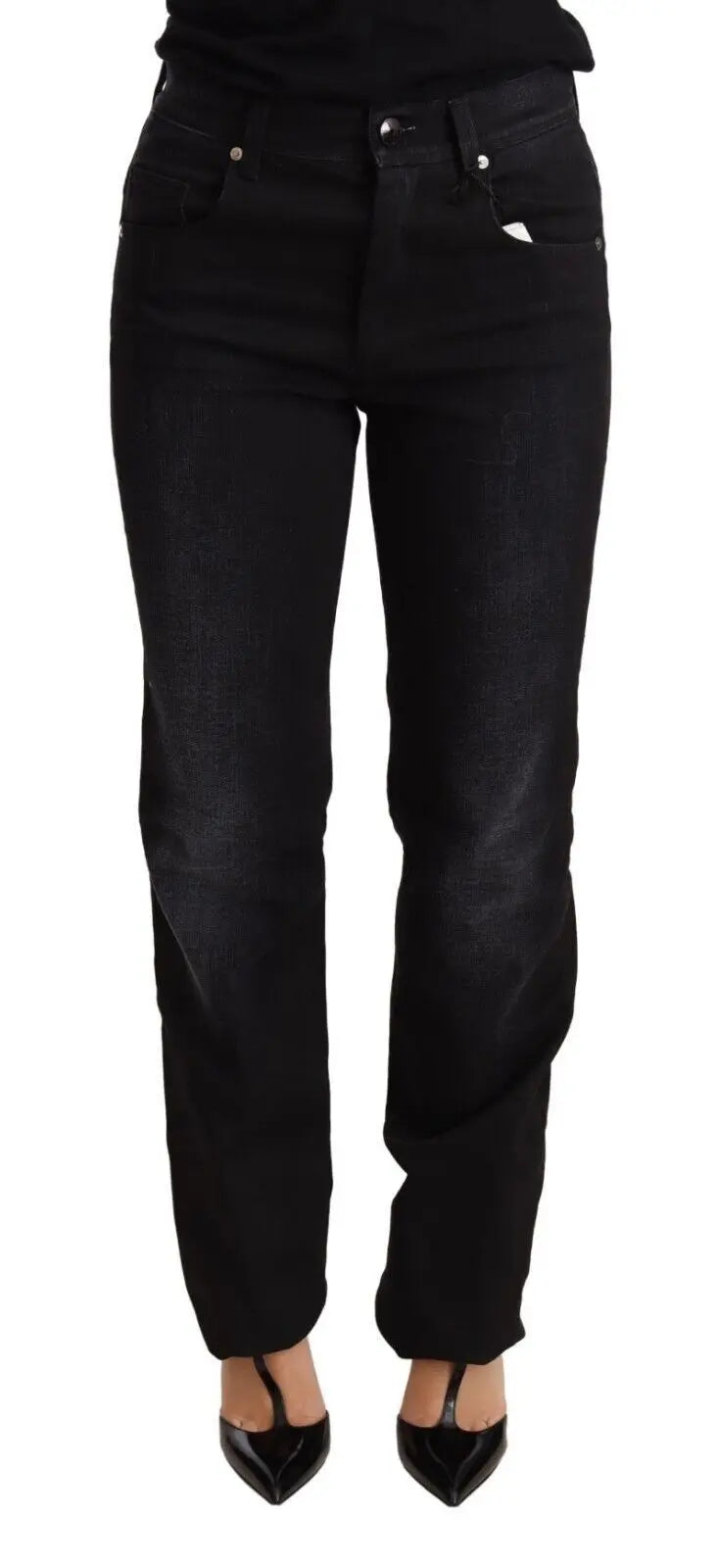 Pantalones vaqueros rectos de mezclilla lavada negra de algodón