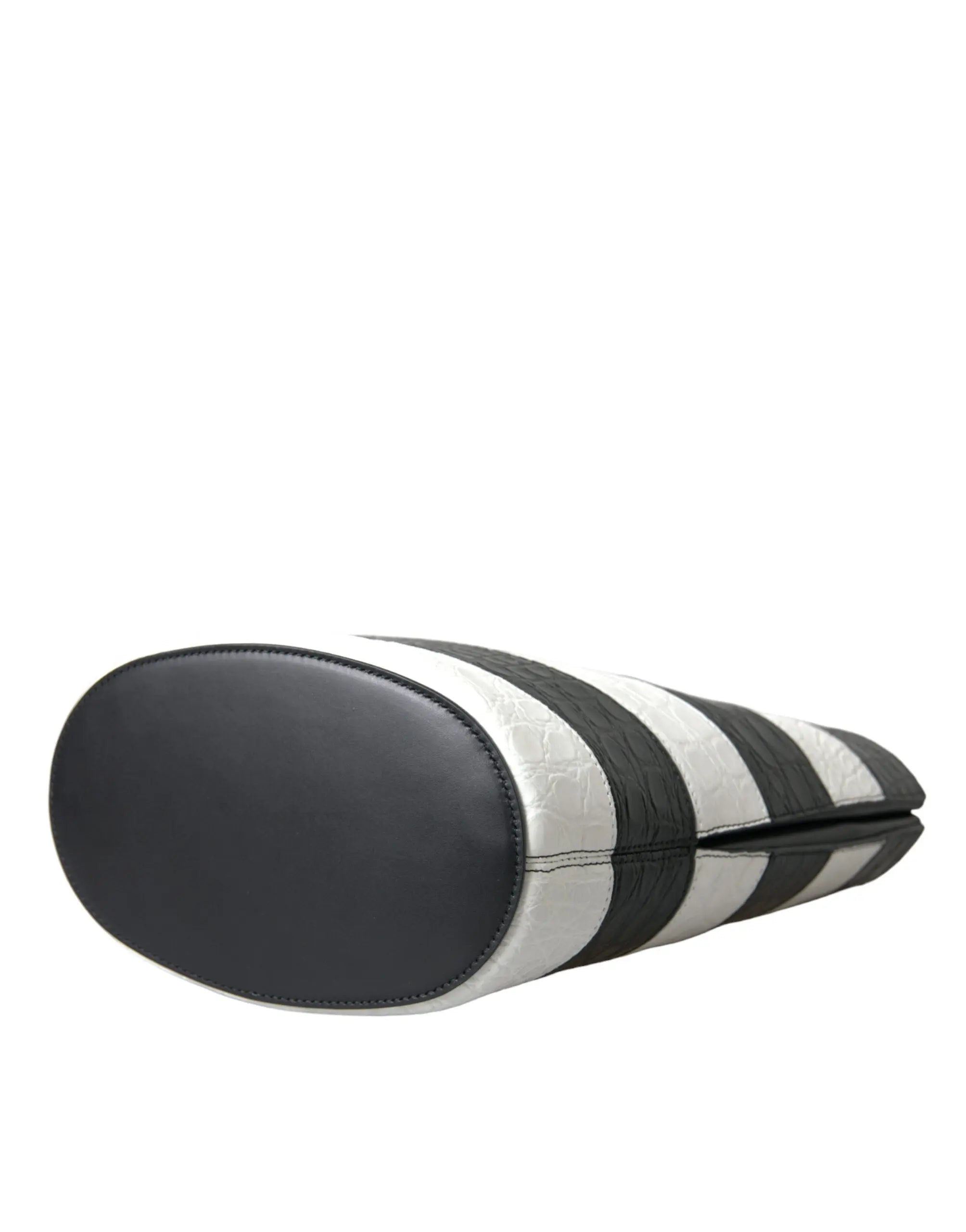 Bolso tipo cubo maxi de piel exótica con rayas blancas y negras