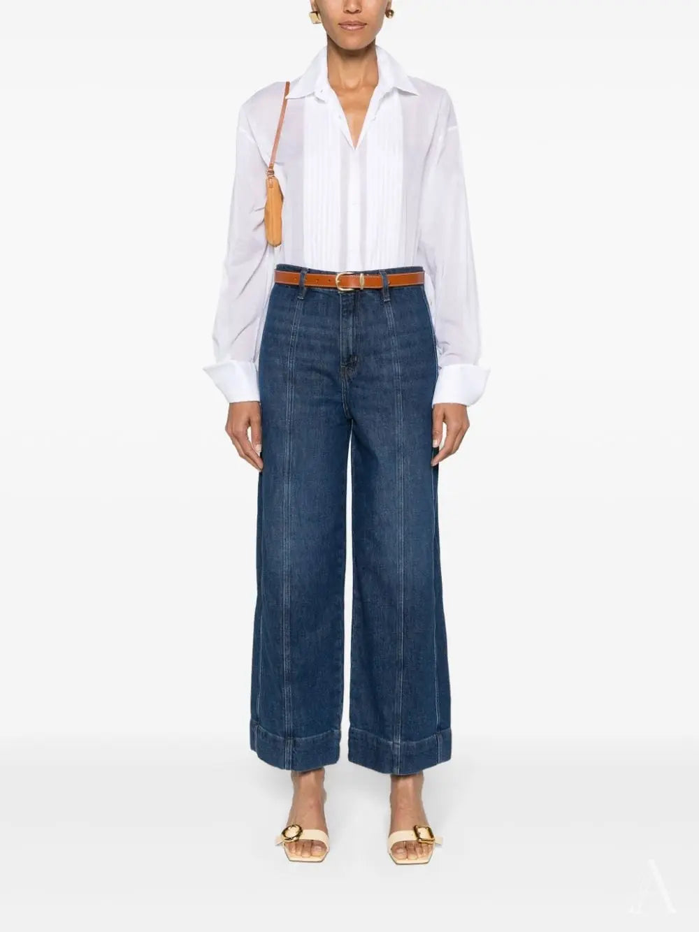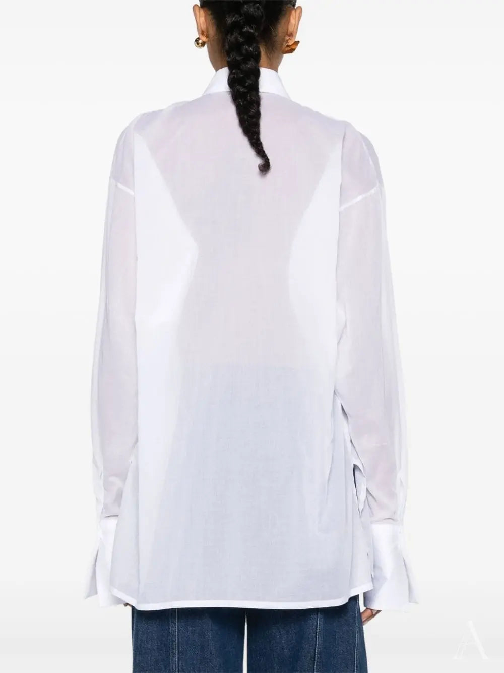 detalle de pliegues de algodón blanco, cuello clásico, cierre frontal con botones, hombros caídos, mangas largas con puños abotonados, aberturas laterales, dobladillo recto Talla y ajuste - Esta prenda tiene un ajuste fiel a la talla. Recomendamos que elijas tu talla habitual. La modelo mide 1,75 m / 5 pies 8 pulgadas y lleva la talla 40 (IT)
