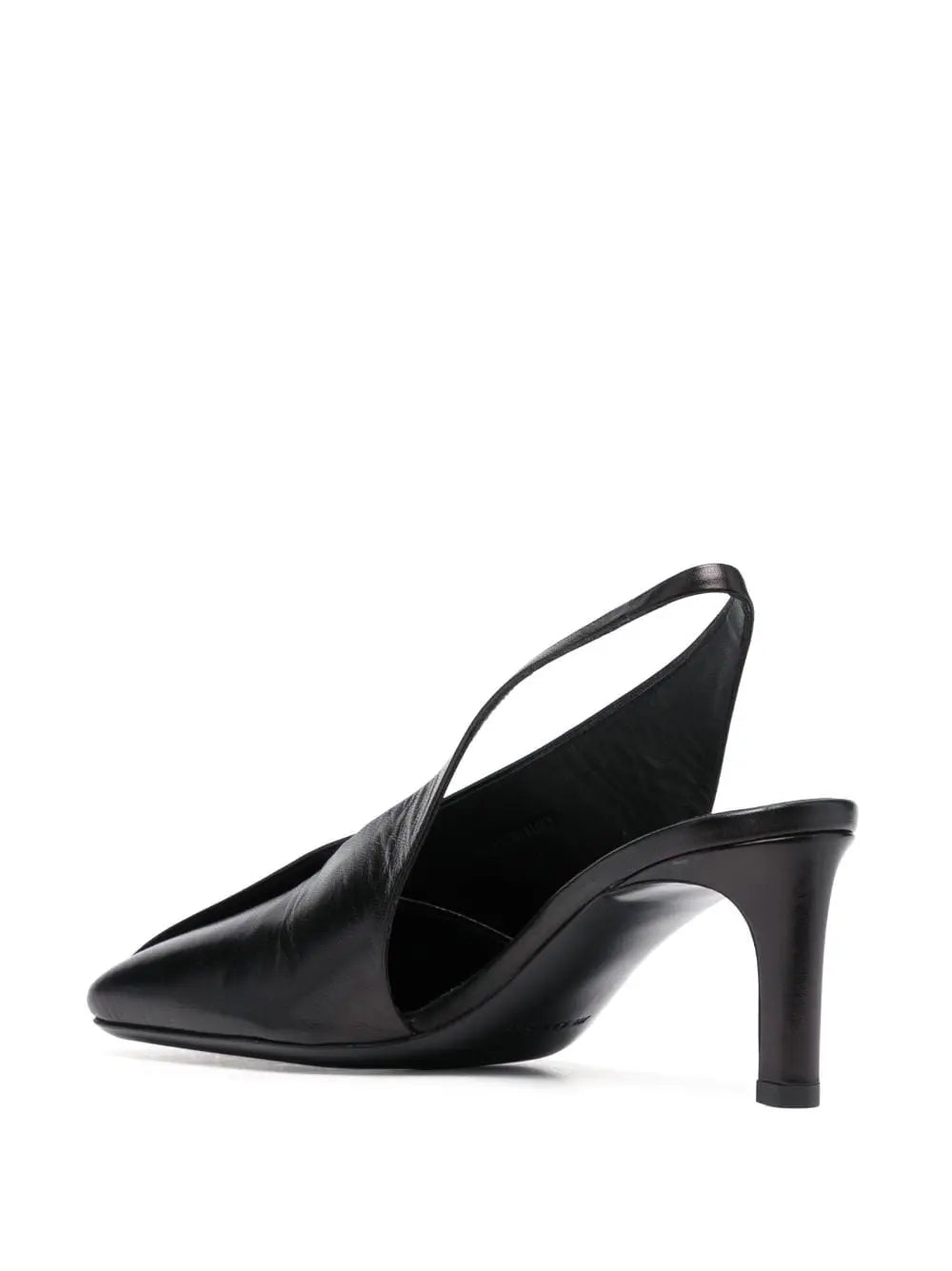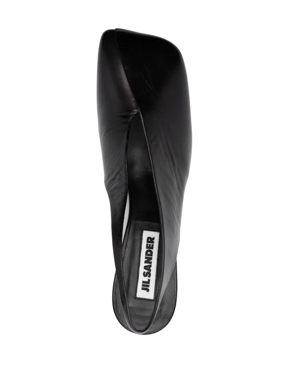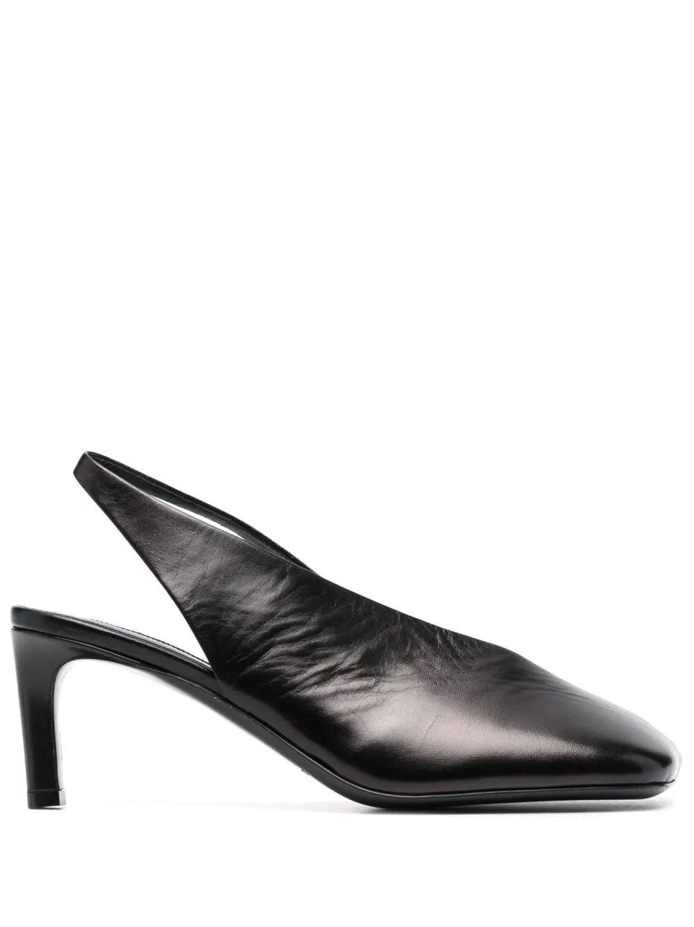 Zapatos de tacón de cuero con punta cuadrada de 75 mm de JIL SANDER, en color negro, punta cuadrada, cuerpo asimétrico, tacón de aguja y cuero. Talla y ajuste - Tacón de 2,6 in / 6,5 cm