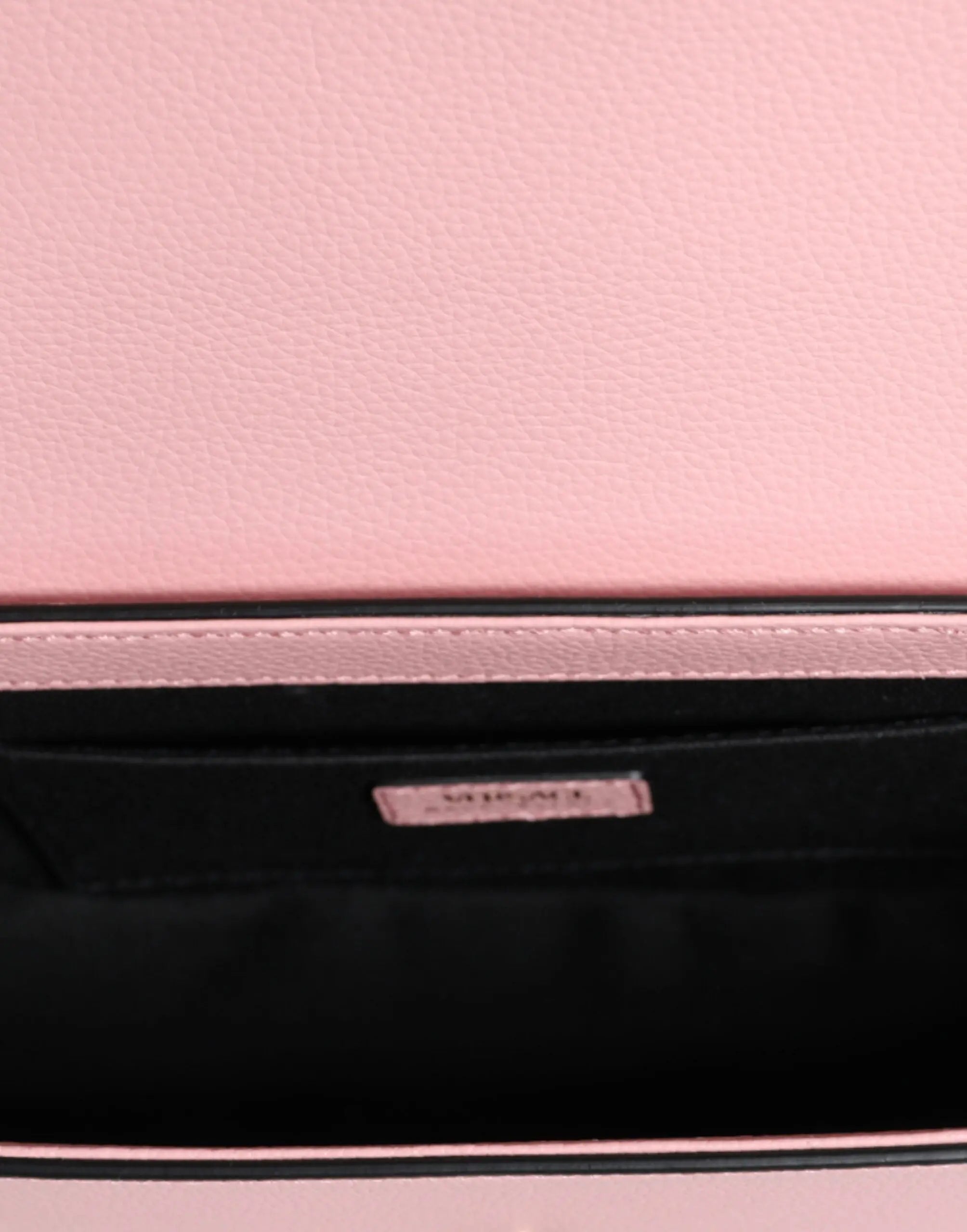 Bolso bandolera cruzado de piel de becerro granulada rosa con logotipo