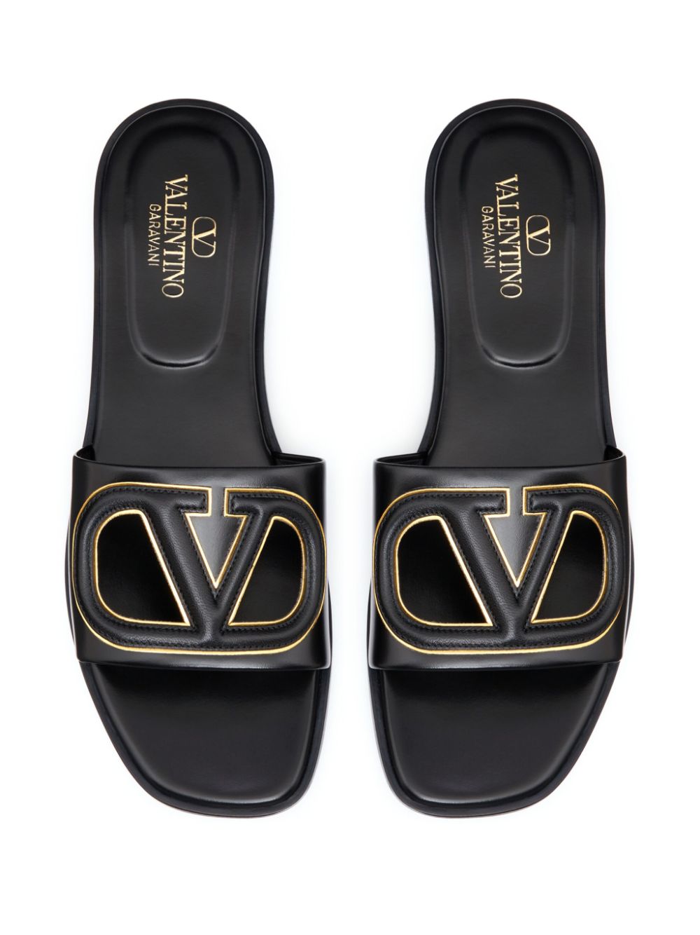 Negro, piel de becerro, grano liso, detalle de la firma VLogo, bordes en contraste, punta cuadrada abierta, banda única para el dedo, diseño sin cordones, plantilla con logo y suela plana. Sandalias de cuero VLogo Cut-Out Talla y ajuste - Tacón de 1 cm