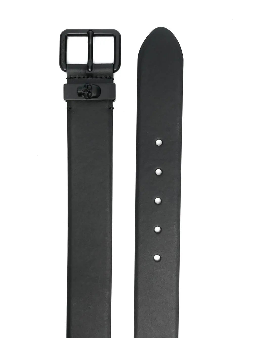 buckle leather belt from Alexander McQueen featuring black, calf leather, skull appliqué, punch-hole detailing and buckle fastening.