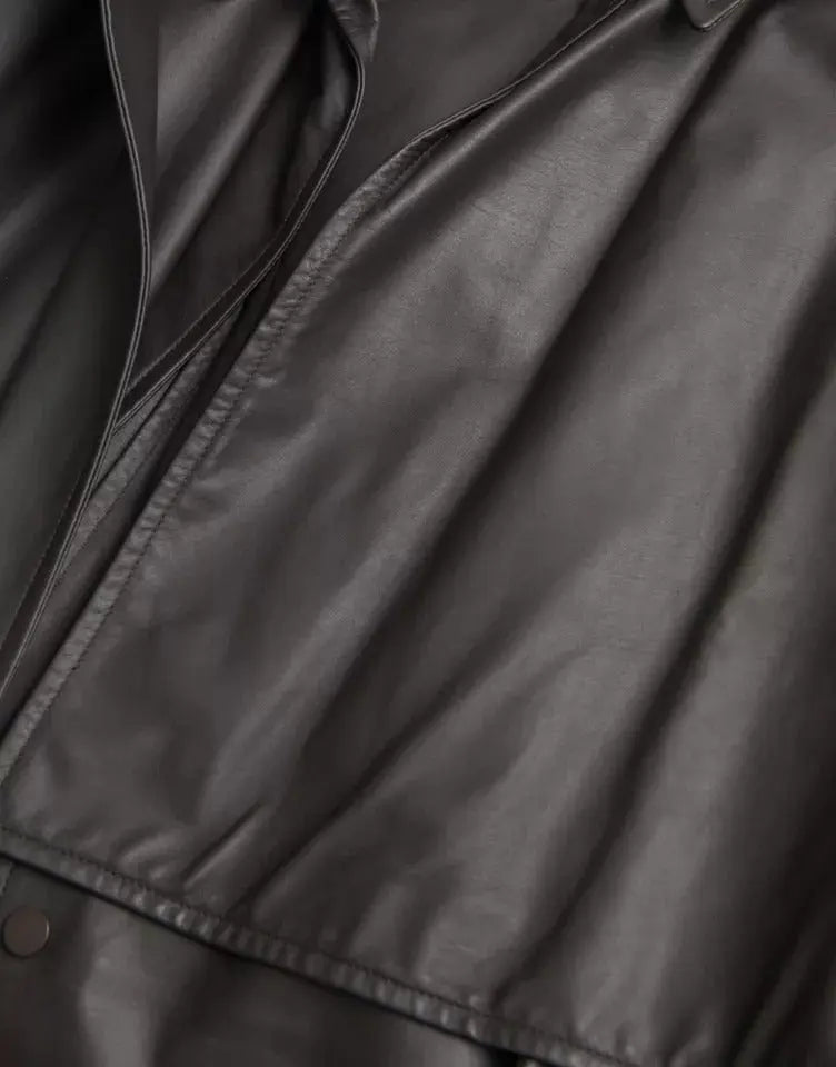 Black Leather Men Waterproof Trenchcoat Jacket