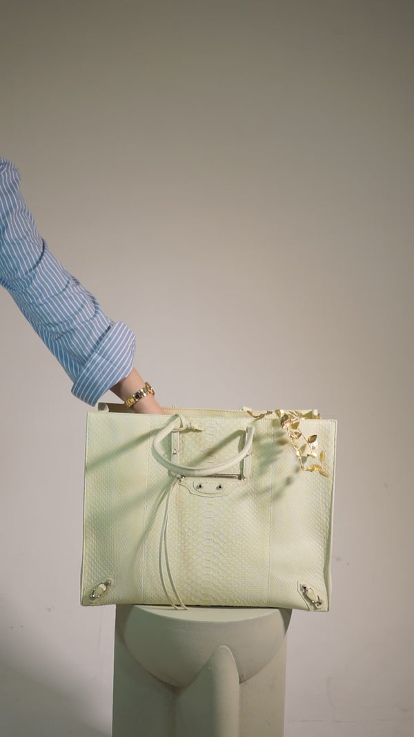White Yellow Exotic Skin Leather Shopping Tote PAPIER Bag