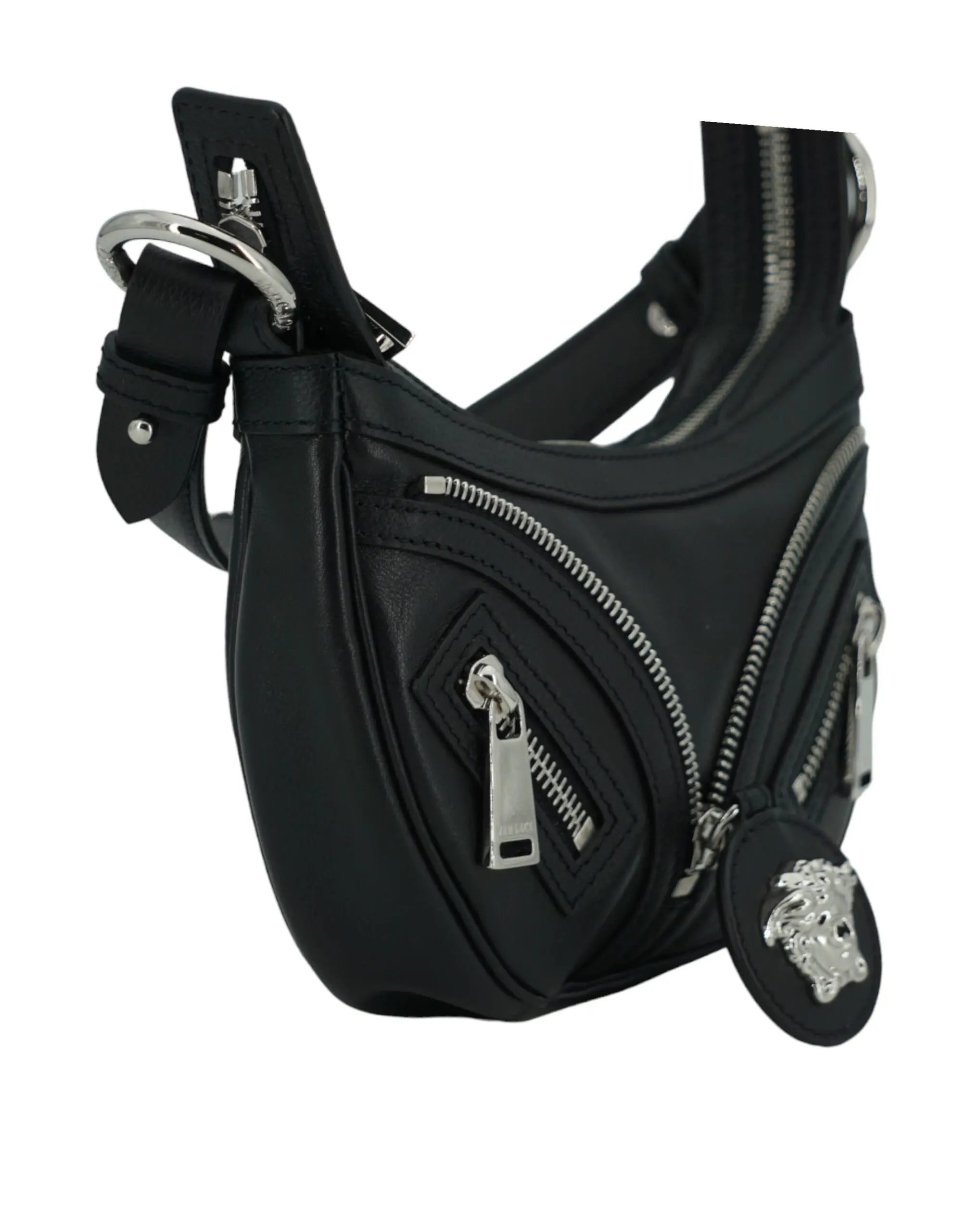 Black Calf Leather Hobo Mini Shoulder Bag