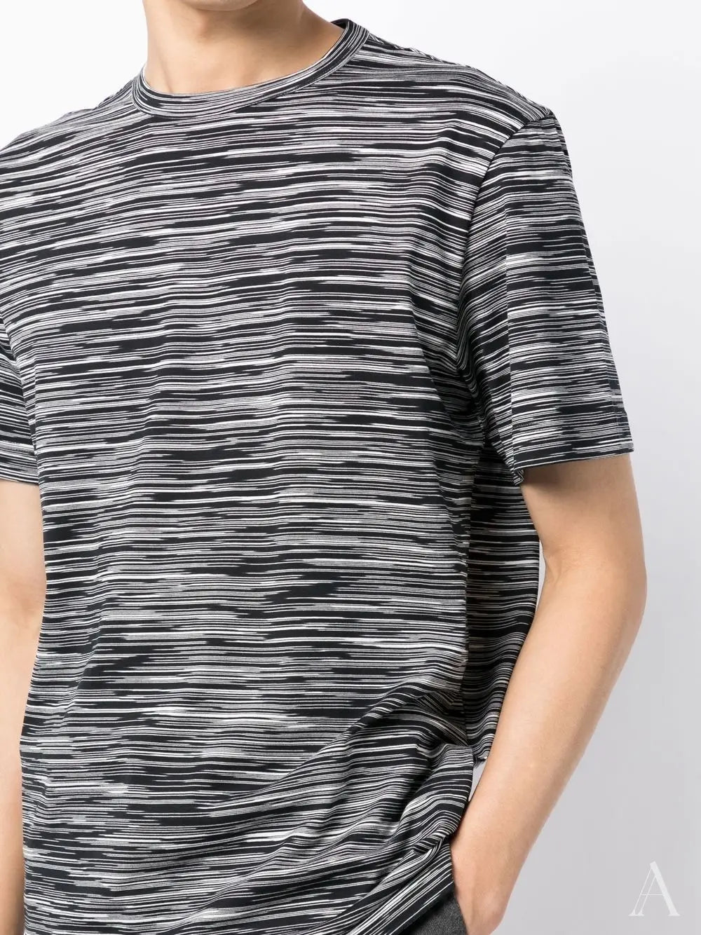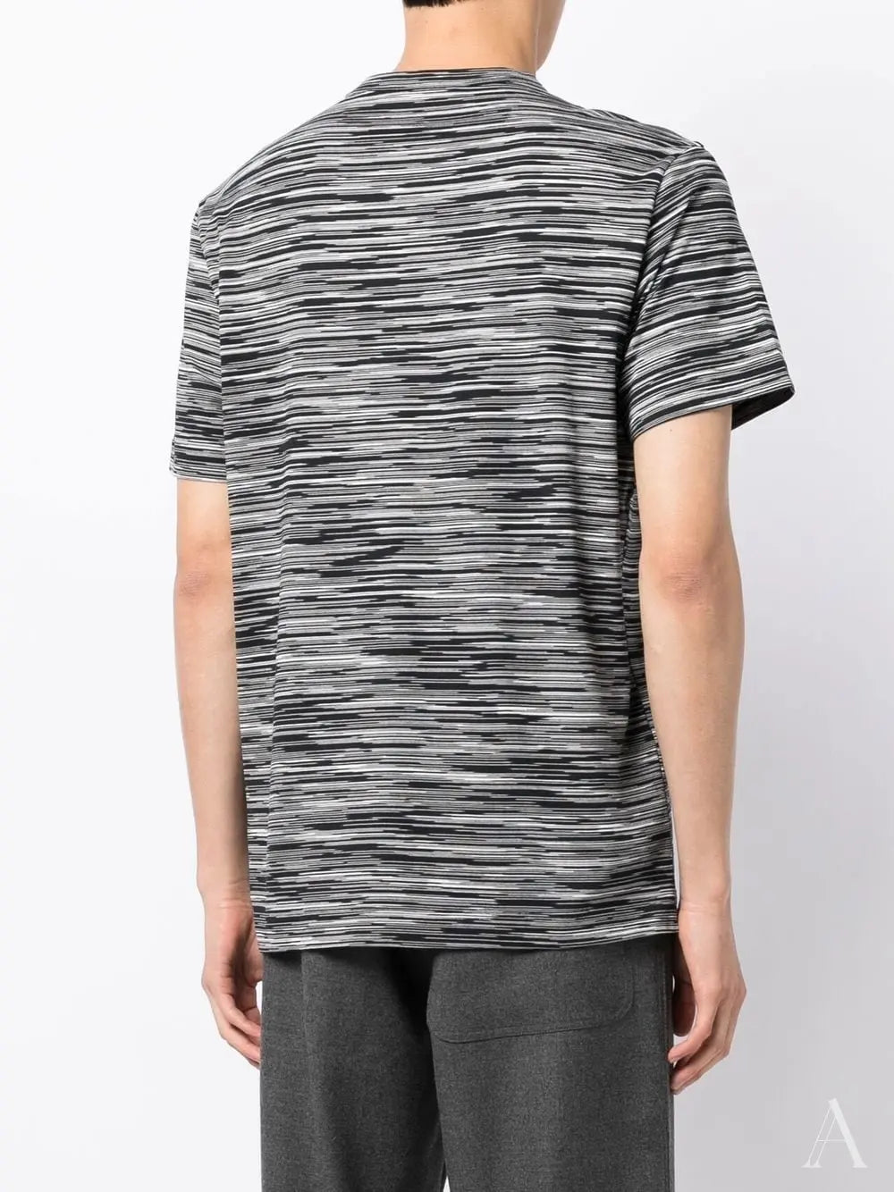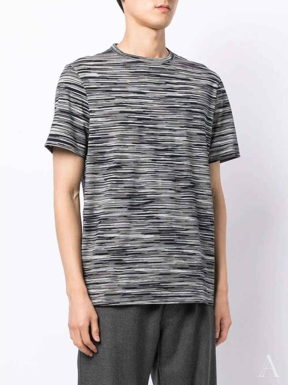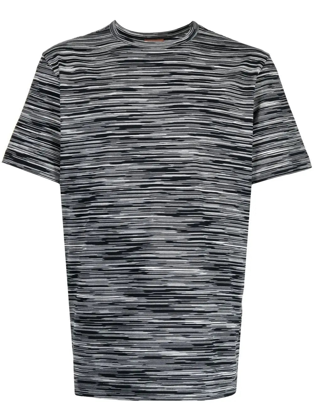 striped short-sleeved T-shirt from MISSONI featuring jersey knit, horizontal stripe pattern, crew neck, short sleeves, straight hem, black and cotton. The item you receive may differ slightly from the item photographed. This is due to the artisanal nature in which all Missoni products are constructed.. Size and Fit - This piece fits true to size. We recommend you get your regular size. Model is 1,84m / 6ft 1in wearing size M