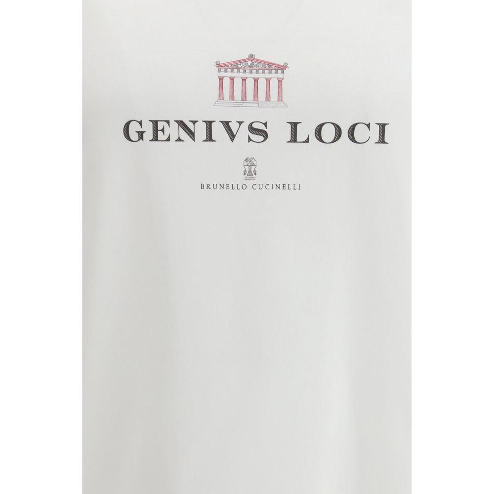 The T-shirt in cotton jersey by Brunello Cucinelli expresses understated refinement through a clean construction that reflects the brand’s meticulous approach. The round neck shapes a neat, balanced line, while the double-stitched hems on sleeves and bottom add discreet precision to the silhouette. The “Genivs loci” inscription introduces a cultured and distinctive touch, turning the garment into a subtle statement of contemporary identity. The regular fit enhances an effortless outline, offering a T-shirt that blends simplicity, elegance and the unmistakable character of Brunello Cucinelli.