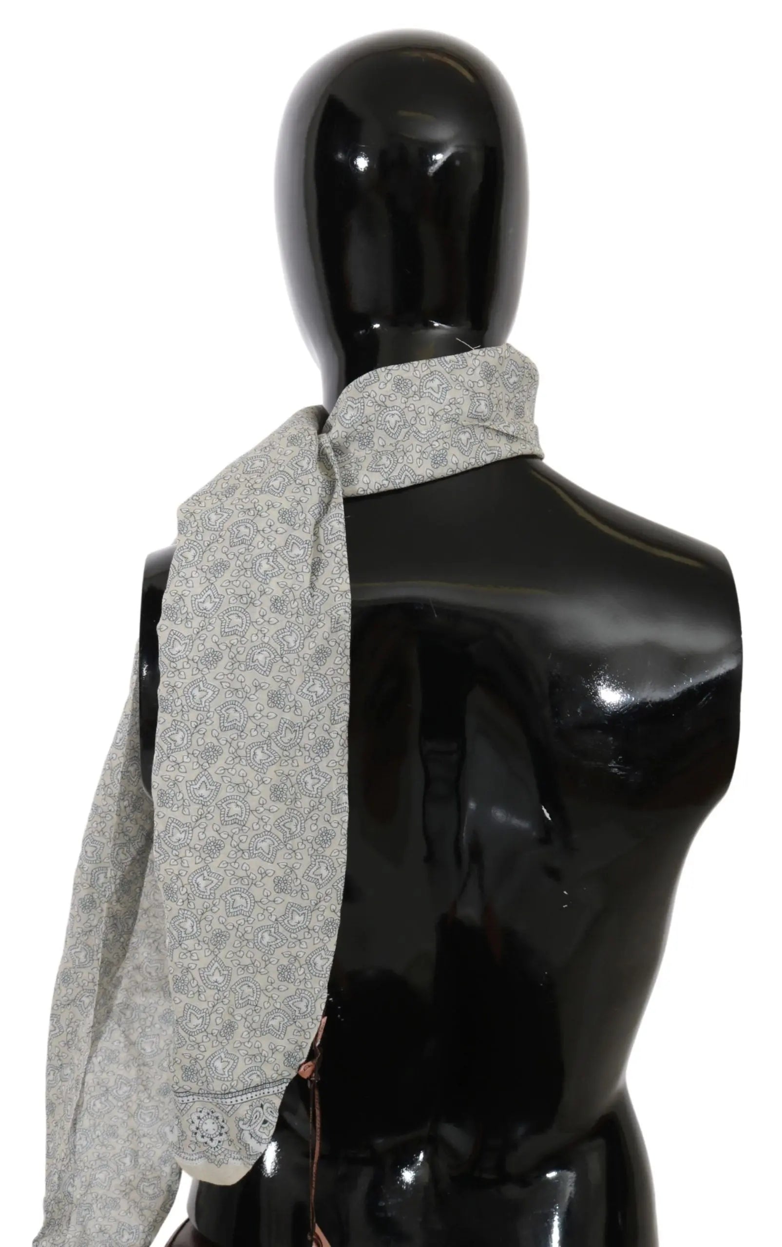 Хлопковый бежево-синий шарф с фантазийным принтом