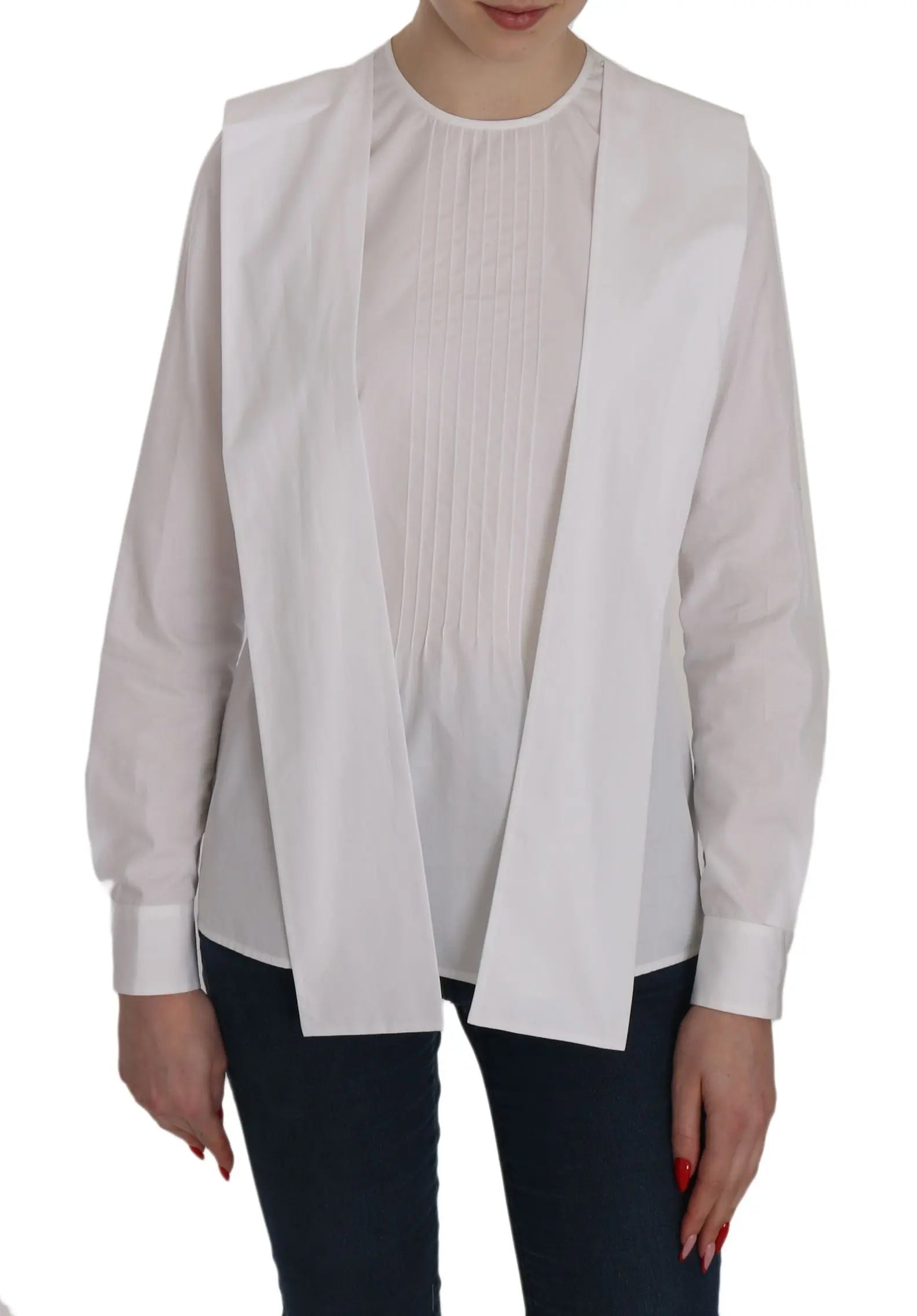 Белая хлопковая блузка с круглым вырезом и длинными рукавами